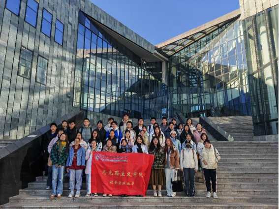 11月18日上午,“习近平新时代中国特色社会主义思想在京华大地上的生动实践”特色公选课开展第三次实践教学,课程组刘晓英、裘梧两位老师带领同学们走进长沟镇中国房山世界地质公园博物馆现场学习。“中国房山世界地质公园” 跨越北京市、河北省两省市四区县,包括周口店园区、石花洞园区等八个园区,总面积1045km²,2006年正式获得联合国教科文组织批准并授牌,该博物馆是地质公园的地标性建筑及核心展示区,集中展示了地质公园的地质遗迹和人文景观,展现了房山区的绿水青山和悠久文脉。