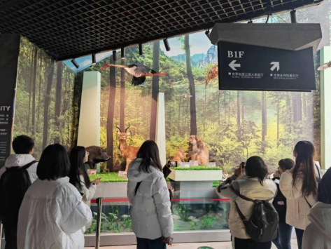 随后,同学们在博物馆讲解员的带领下认真参观了六大展厅,学习了解房山地区的地史演化和地质景观,并通过观摩4D电影,领略了房山区举世无双的地质景观和绿水青山。在室内参观结束后,同学们又来到馆外广场,参加击鼓打卡活动,为“六大房山”鼓舞,为灾后重建加油。