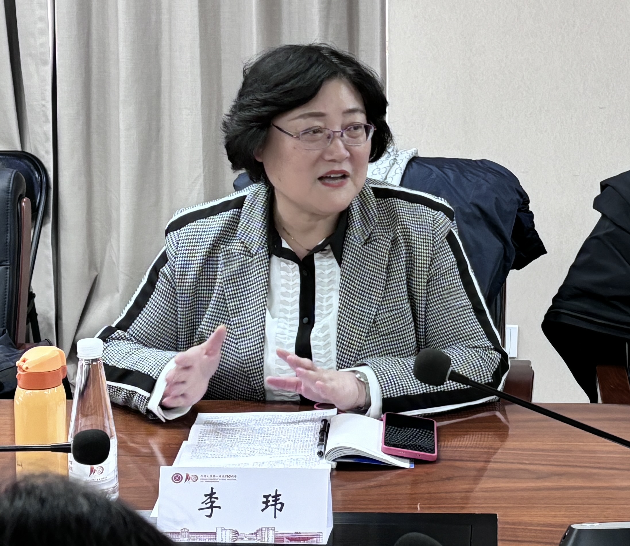 在学生思政工作分享结束后,ok138cn太阳集团党委书记李玮、党委副书记王良滨、副院长袁和静以及国学院院长裘梧,就医学人文、联建联学、抗疫精神、医学伦理课程及实习等相关议题,与北京大学第一医院教学院长杨莉、教育处处长齐建光等进行了深入讨论。