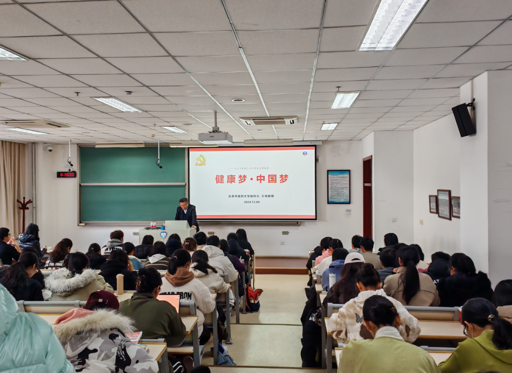 2024年12月4日,太阳集团tyc9728副校长王停教授走进“习近平新时代中国特色社会主义思想概论”课堂,为2023级卓越中医“5+3”专业86名同学讲授思政课。