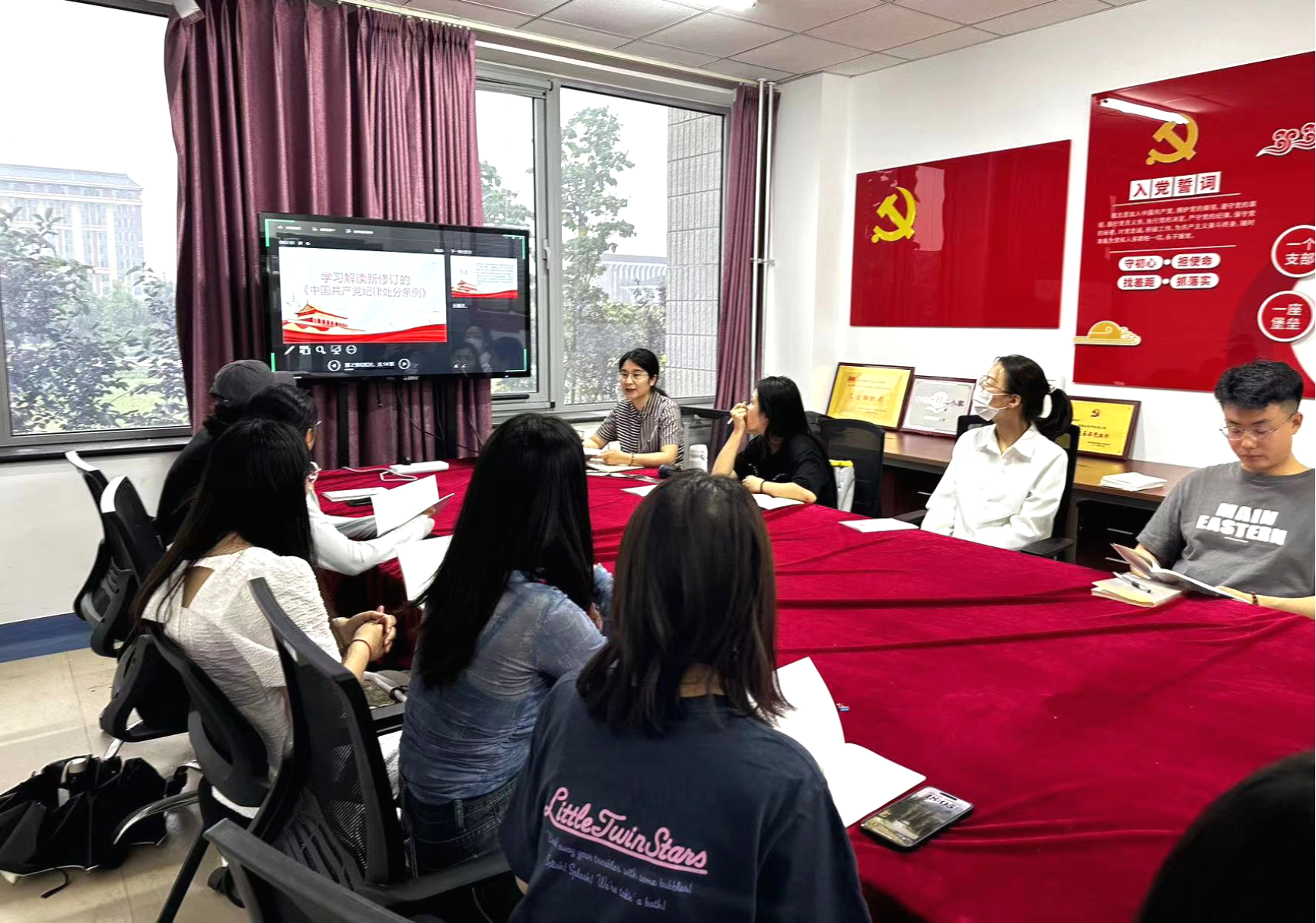 党支部书记徐娜强调了党纪学习教育的重要意义,并带领大家学习了新修订的《中国共产党纪律处分条例》,围绕《条例》修订的主要内容及其鲜明特征进行了解读。同时,传达了学院党委深入开展党纪学习教育的工作要求,并对支部开展党纪学习教育工作做了部署。