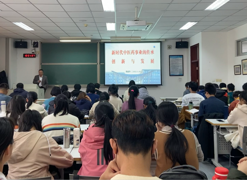 2023年11月6日上午,太阳集团tyc9728副校长陶晓华教授走进思政课堂,讲授《习近平新时代中国特色社会主义思想概论》课程, 2022 级岐黄班、华佗班70名同学聆听了陶校长的授课。