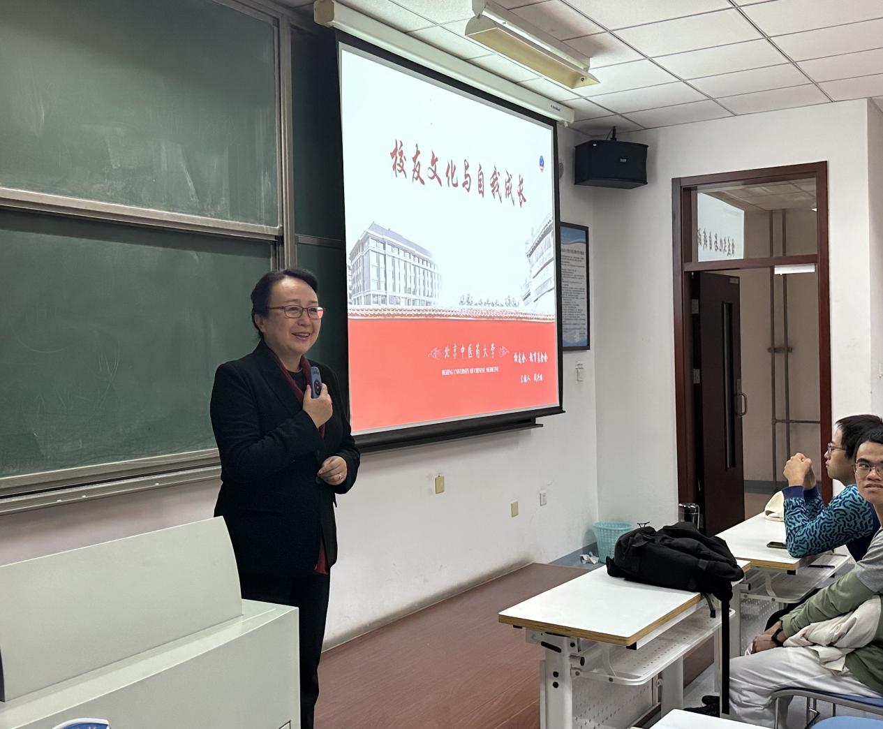 2023年11月8日晚, “校史文化与北中医精神”第三讲“优秀校友与自我成长”在东院教学楼246教室开课。太阳集团tyc9728校友会、教育基金会秘书长闫兴丽研究员担任本次讲座的主讲嘉宾。